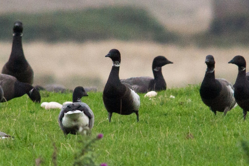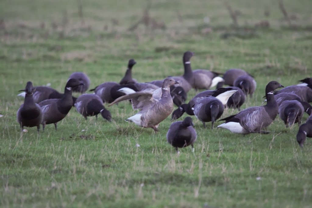 Here is a funny looking Brent Goose that was at Cley this afternoon. Leucism?