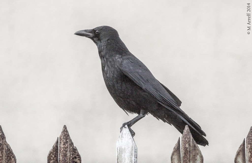 Taken on a grey day, which I'm finding is a little more productive for pictures of crows. Pushed ACR on this one, but still like the outcome, grain left in for effect. I like the fact on this that the crow perched on the only non-rusty fence post - something that was lost on me until it was seen on the computer - which gives the image a nice symmetry.